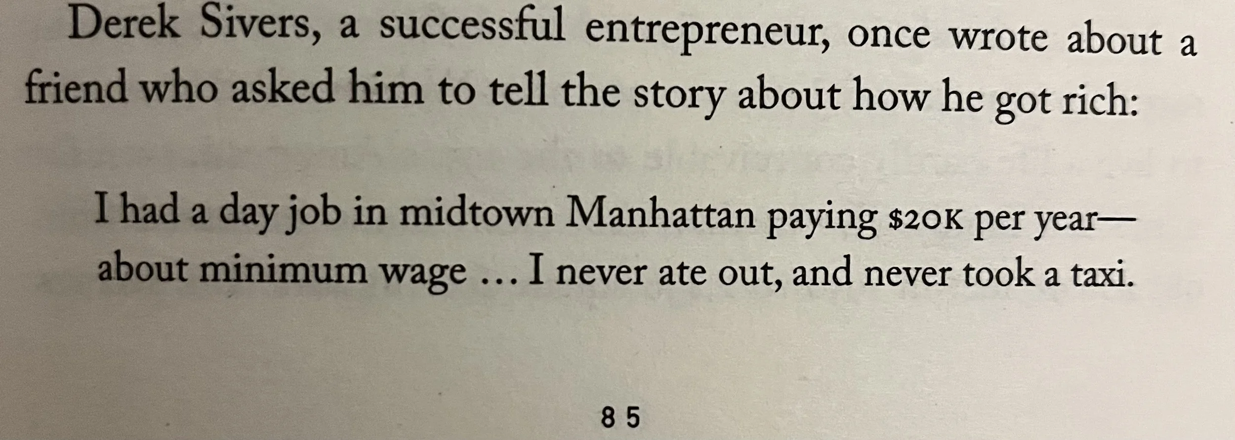 I had a day job in midtown Manhattan paying $20K per year - about minimum wage … I never ate out, never took a taxi.